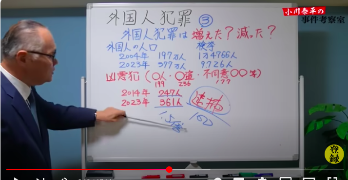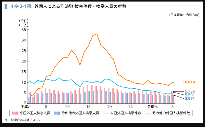 「検挙件数は20年前の半分以下になっているのだから、結果的に外国人犯罪は減っている」